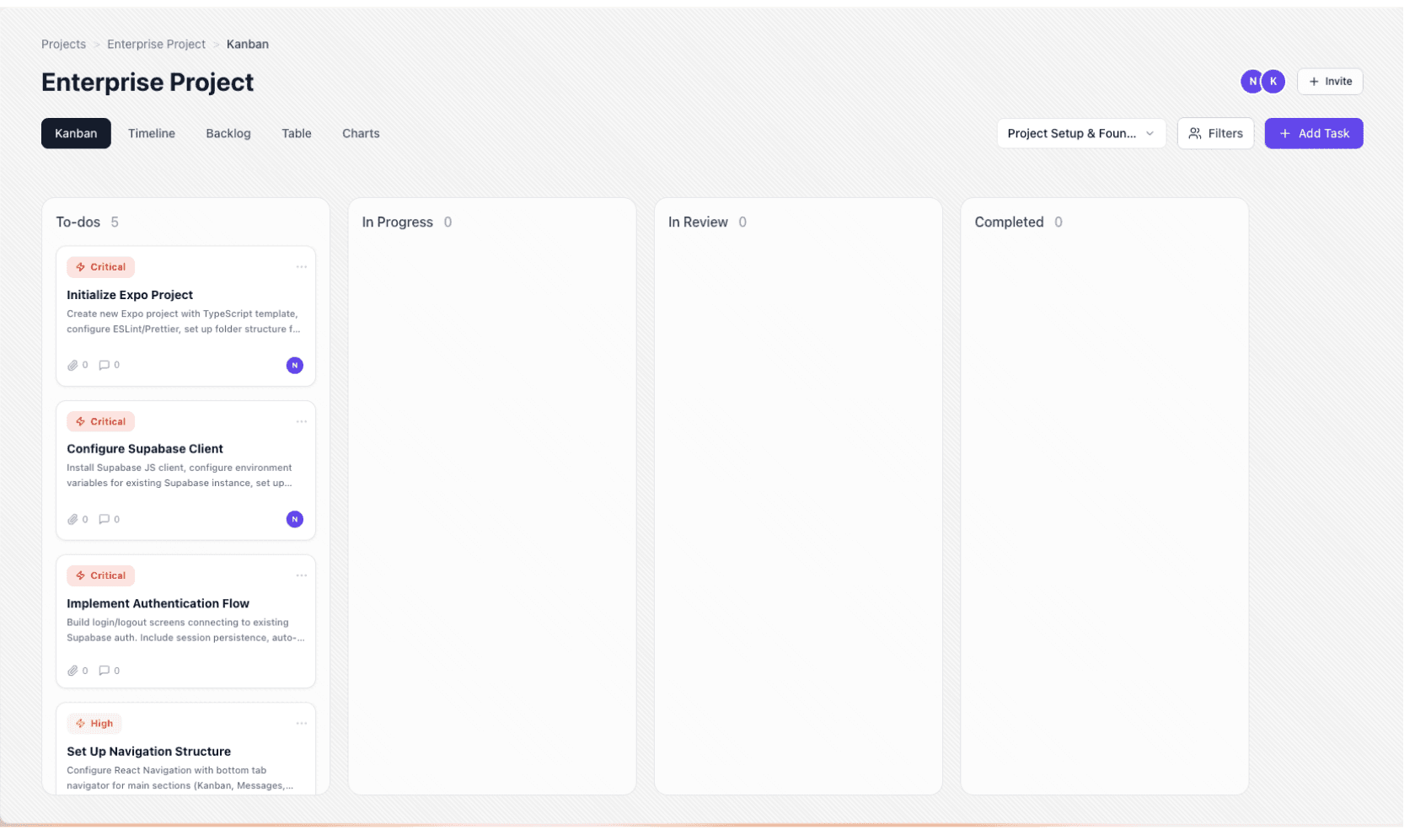 Tasks, milestones, timelines, and ownership are created automatically. Your team is live, collaboration is built in, and delivery begins all in under 30 mins